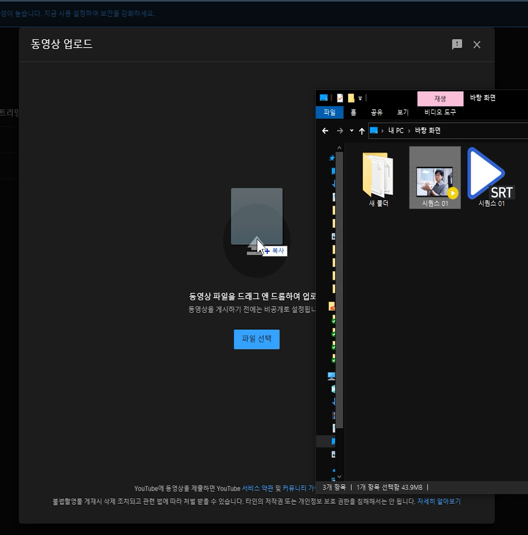 이제 이렇게 완성된 영상과 srt자막을 유튜브에 업로드 해봅시다.