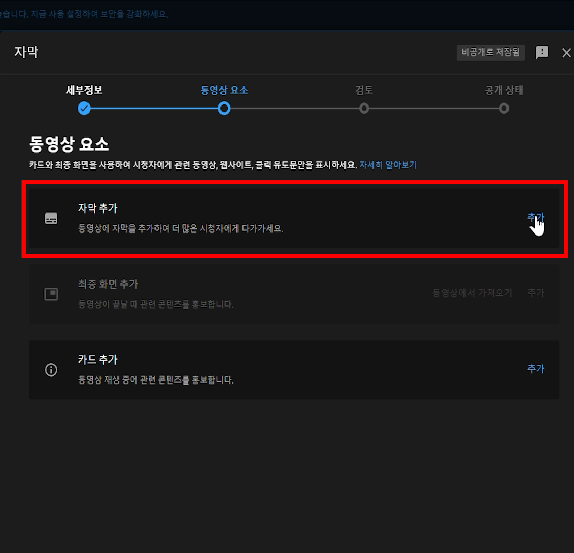 그래서 저는 영상과 자막을 따로 출력해서 따로 업로드 하고 있어요.