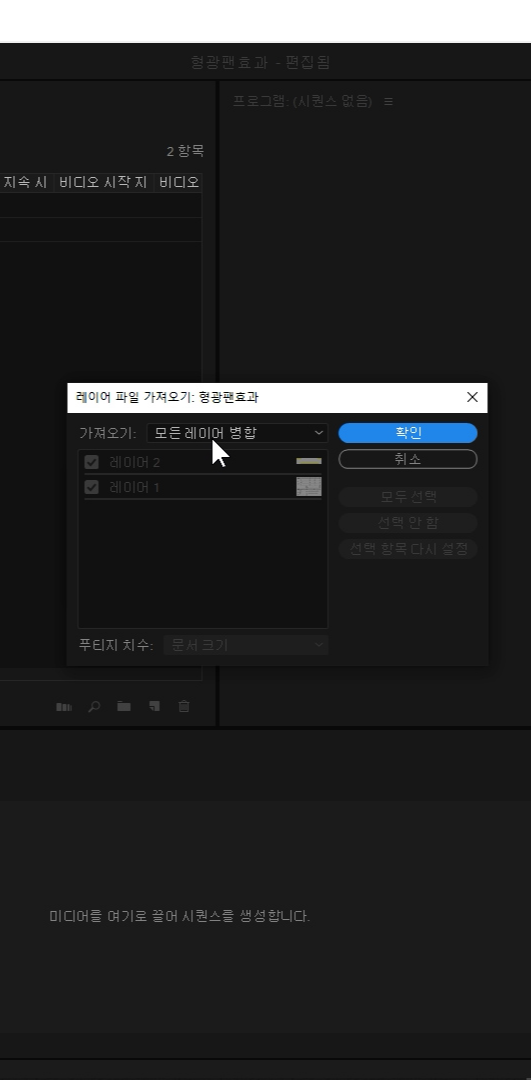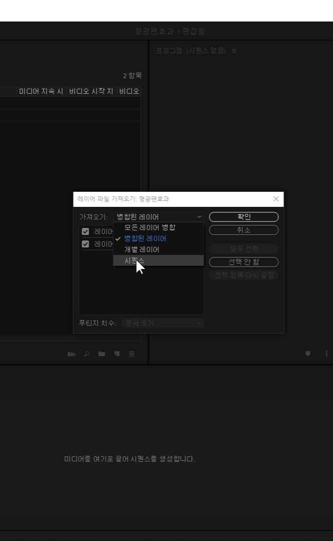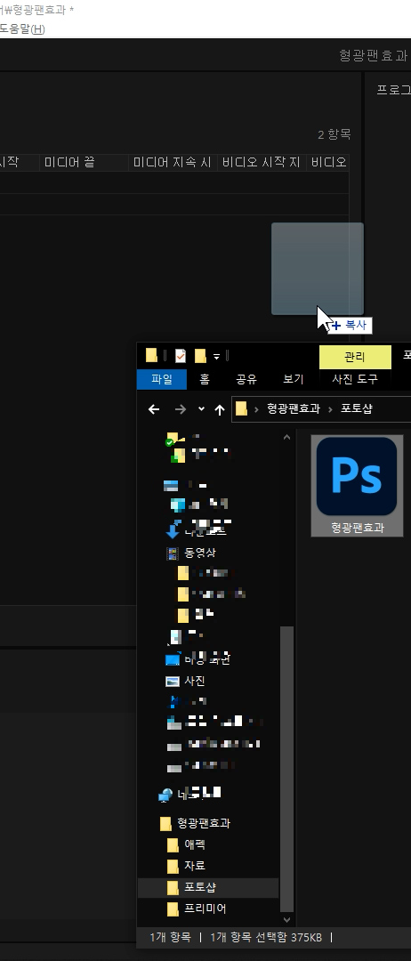 프리미어 프로젝트 패널에 포토샵파일을 가져옵니다.