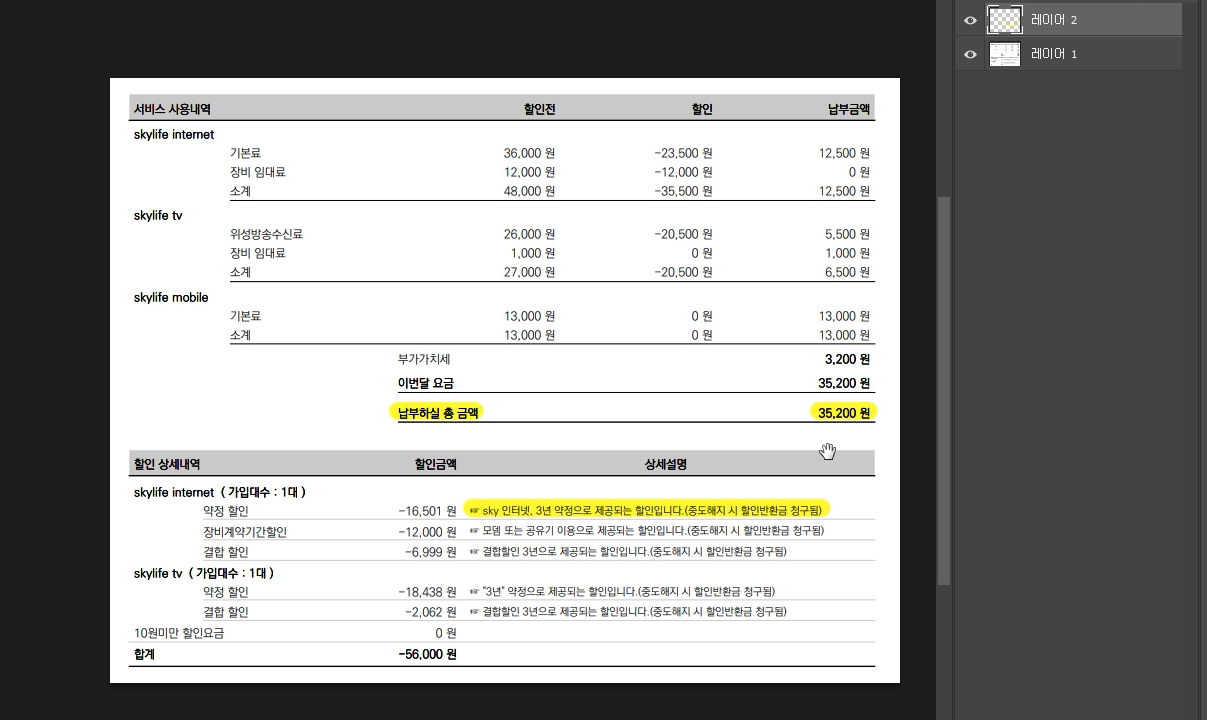 이렇게 글자를 선명하게 살리면서, 노란색 형광펜으로 색칠한 효과를 만들 수 있습니다.