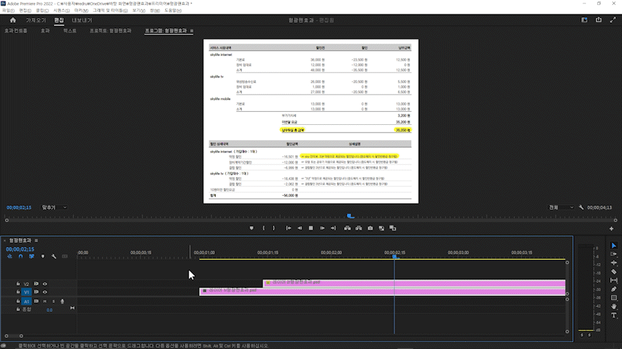프리미어 움직이는 형광펜 효과, 글자 강조 블랜딩 혼합 모드