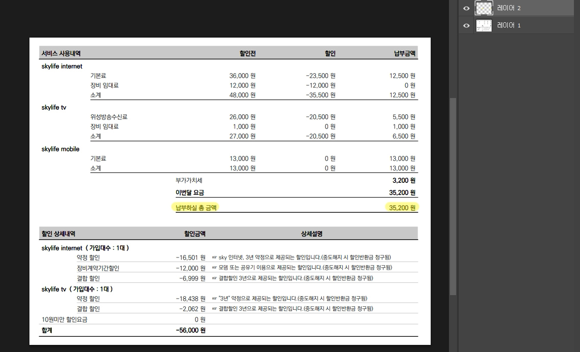 포토샵 파일(pds) 내부의 레이어 모두를 각각 살려서 가져옵니다.