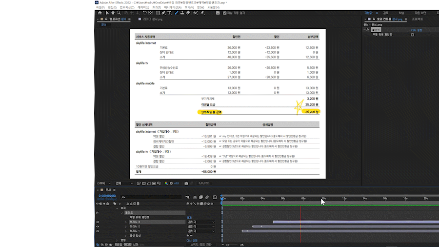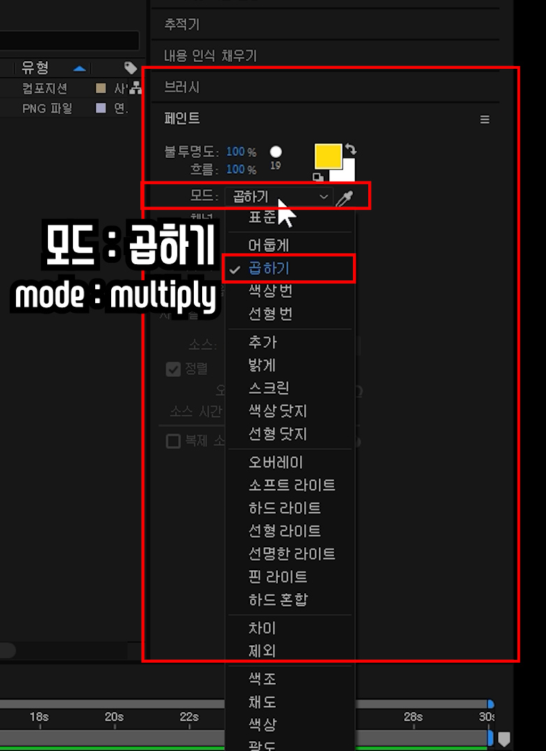 애프터이펙트 움직이는 형광펜 효과, 글자 강조 손글씨 브러시 페인트.