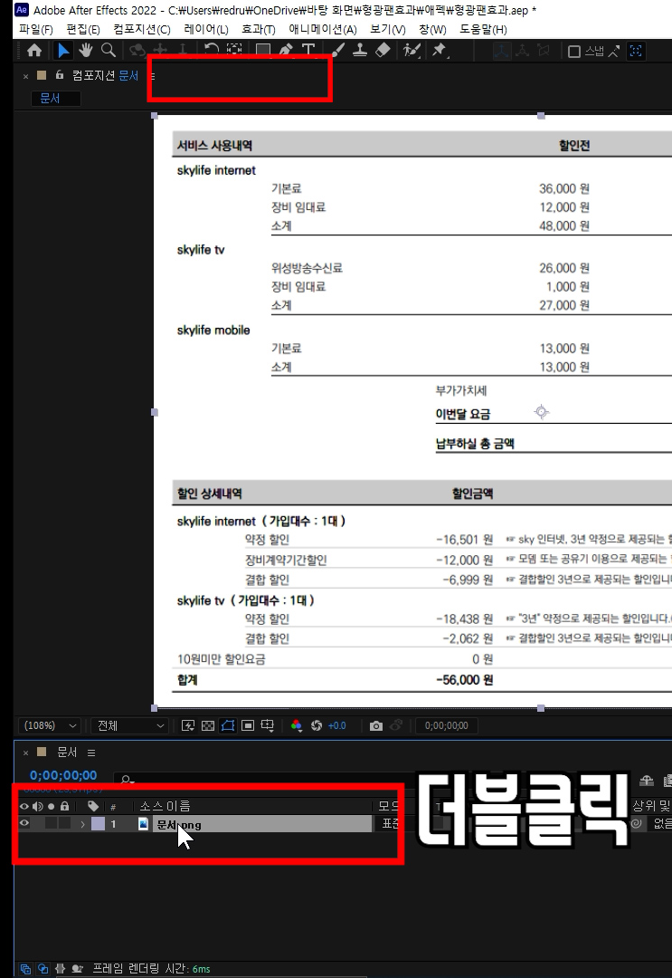 문서 이미지 트랙을 더블 클릭해서 레이어 화면으로 들어갑니다.