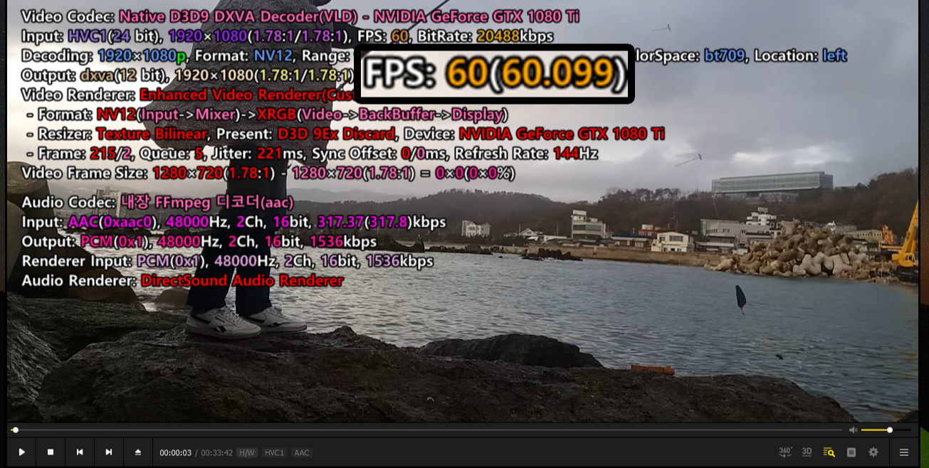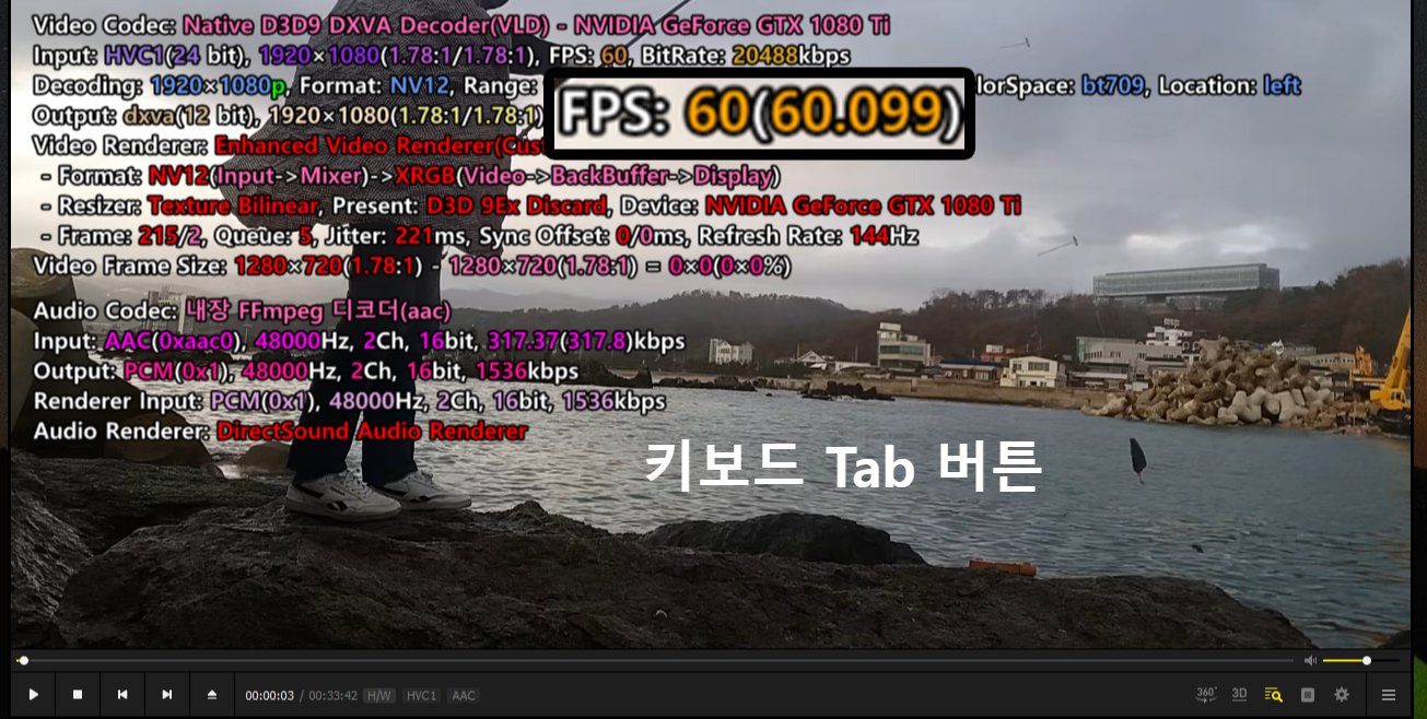 카카오 플레이어(팟플레이어) : 키보드 Tab 버튼 - FPS 확인.