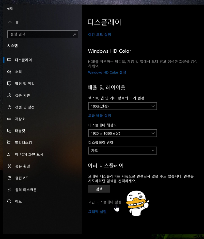 '고급 디스플레이 설정'을 찾아 누릅니다.