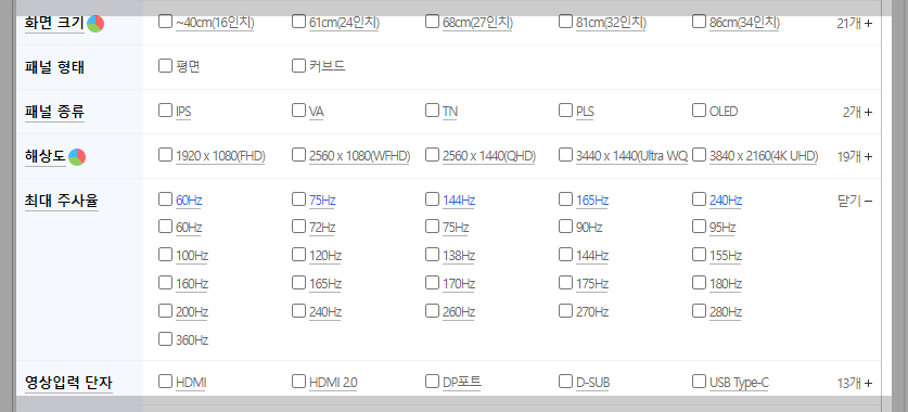 단, 고 주사율(Hz 헤르츠) 일 수록 pc의 성능이 받쳐줘야 합니다.