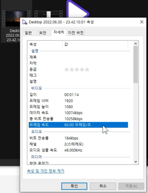 내 영상 1초당 프레임 확인하기. 몇 프레임 인지?