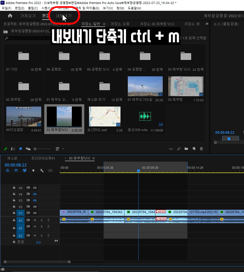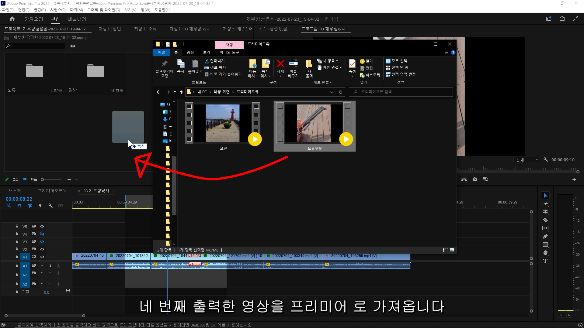 04. 그리고 출력한 영상을 프리미어로 불러오기(가져오기) 합니다.