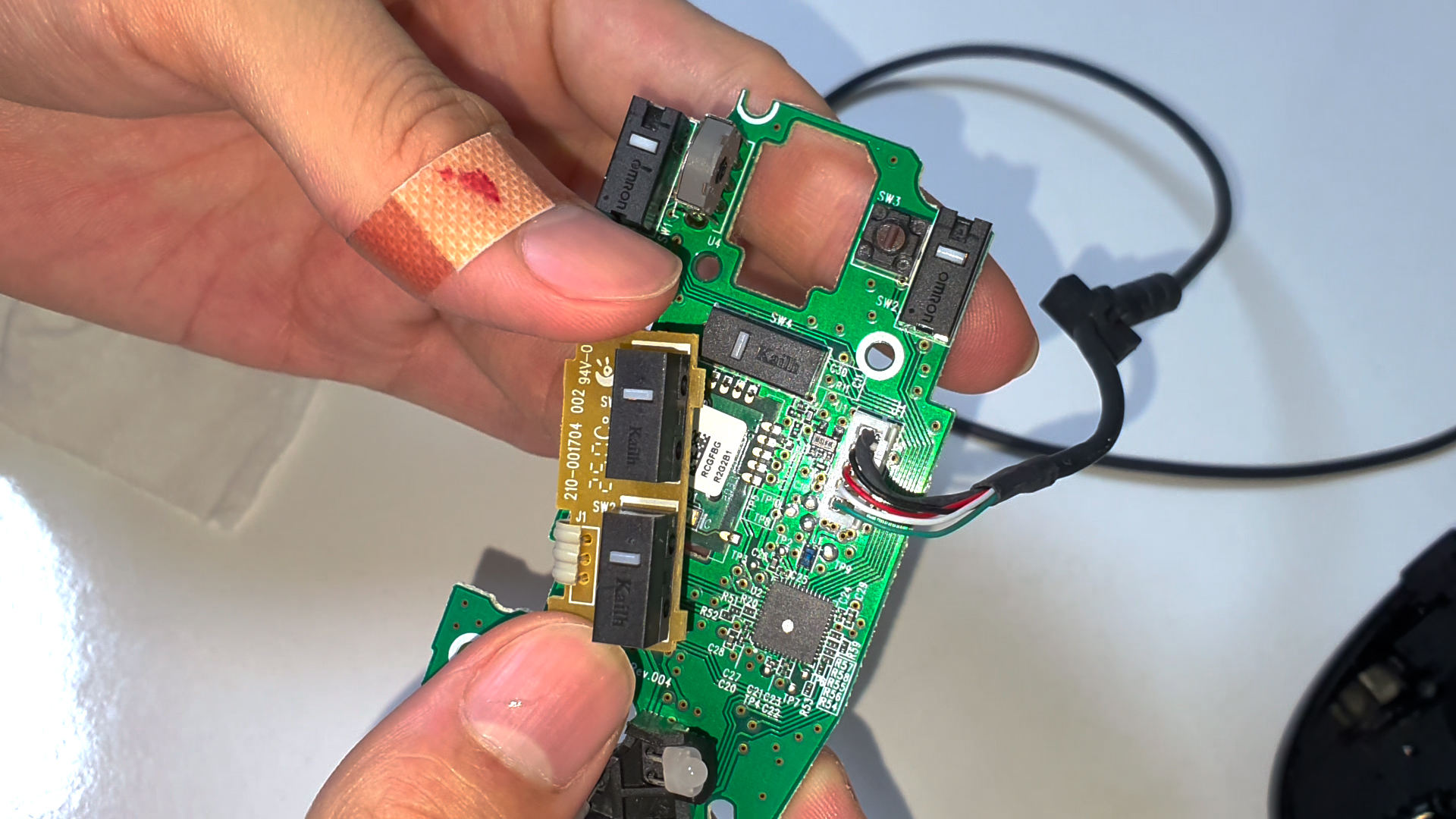 그리고 마우스 내부의 나사를 모두 제거하면 기판과 케이스가 모두 분해됩니다.
