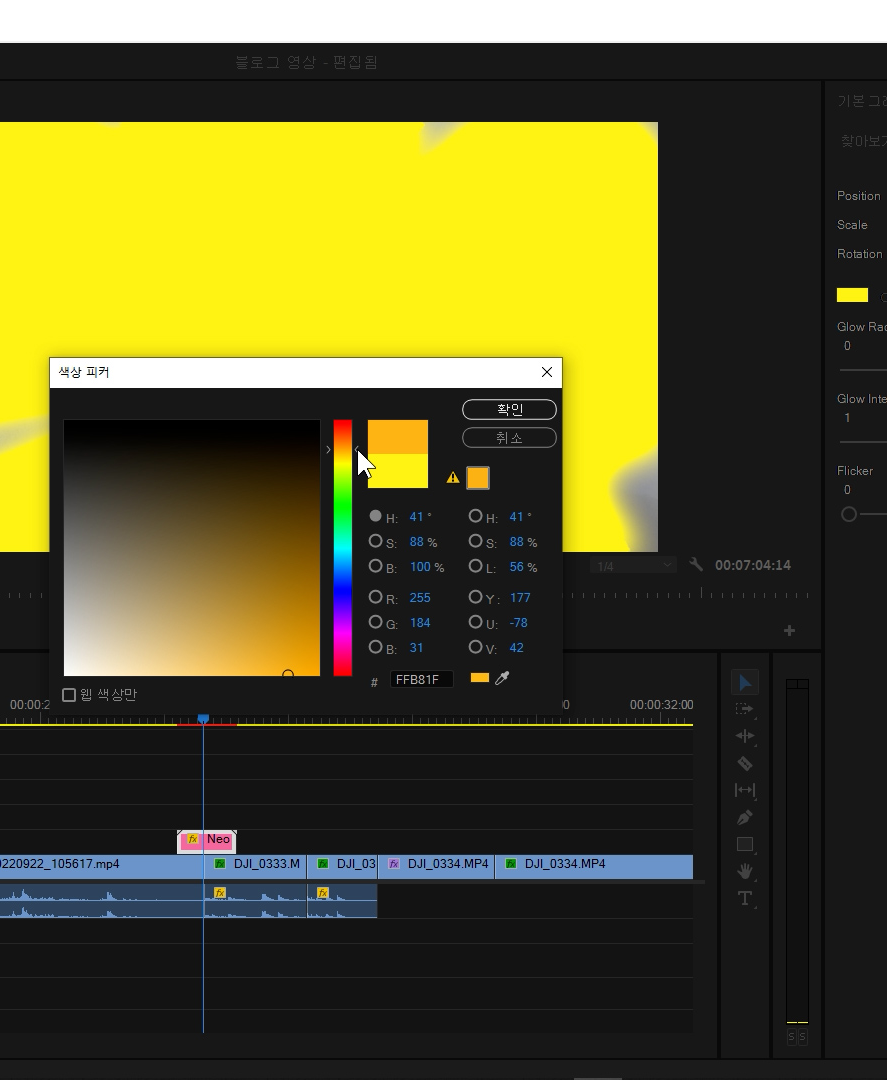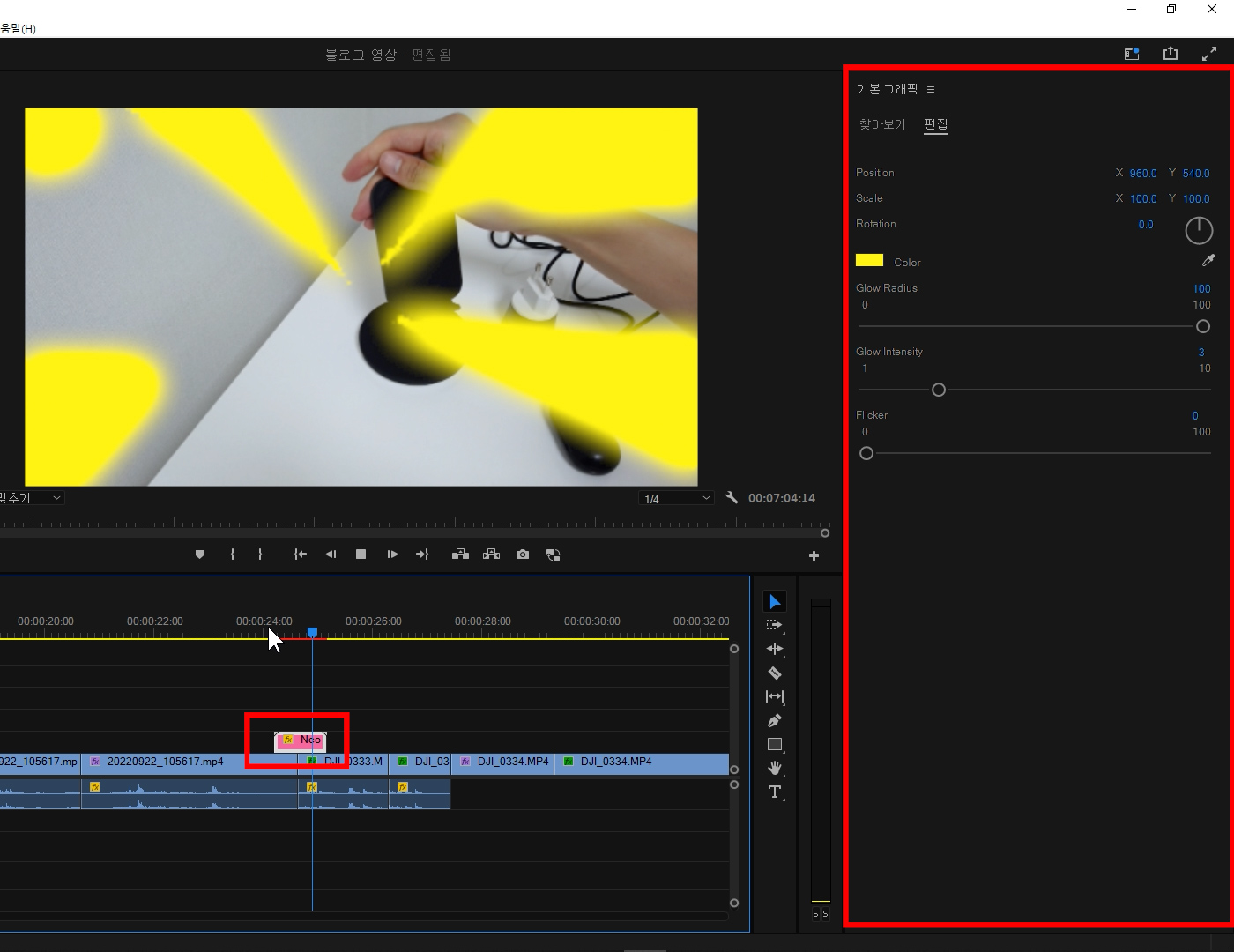 프리미어에서 영상 편집할 때 다양한 네온사인 효과를 사용했습니다.