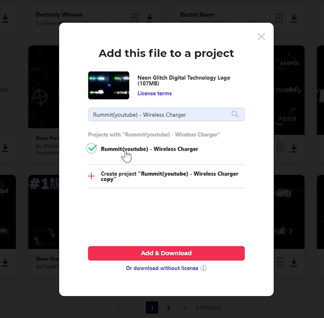 엔바토 엘리먼트(Envato Elements)에서 다운로드할 때는 프로젝트 이름을 적어둬야 합니다.