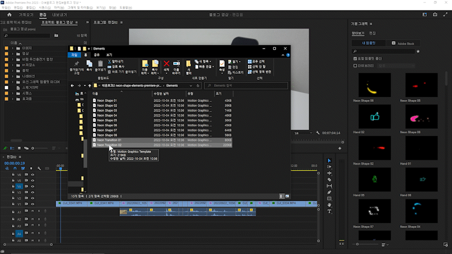 다운로드한 네온 효과(neon effect) 폴더를 열어서, Motion Graphics Template(.mogrt) 파일을 찾습니다.