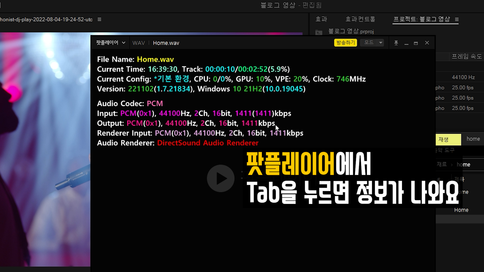 저는 팟플레이어(카카오 플레이어)를 이용해서 음질의 정보를 파악합니다.
