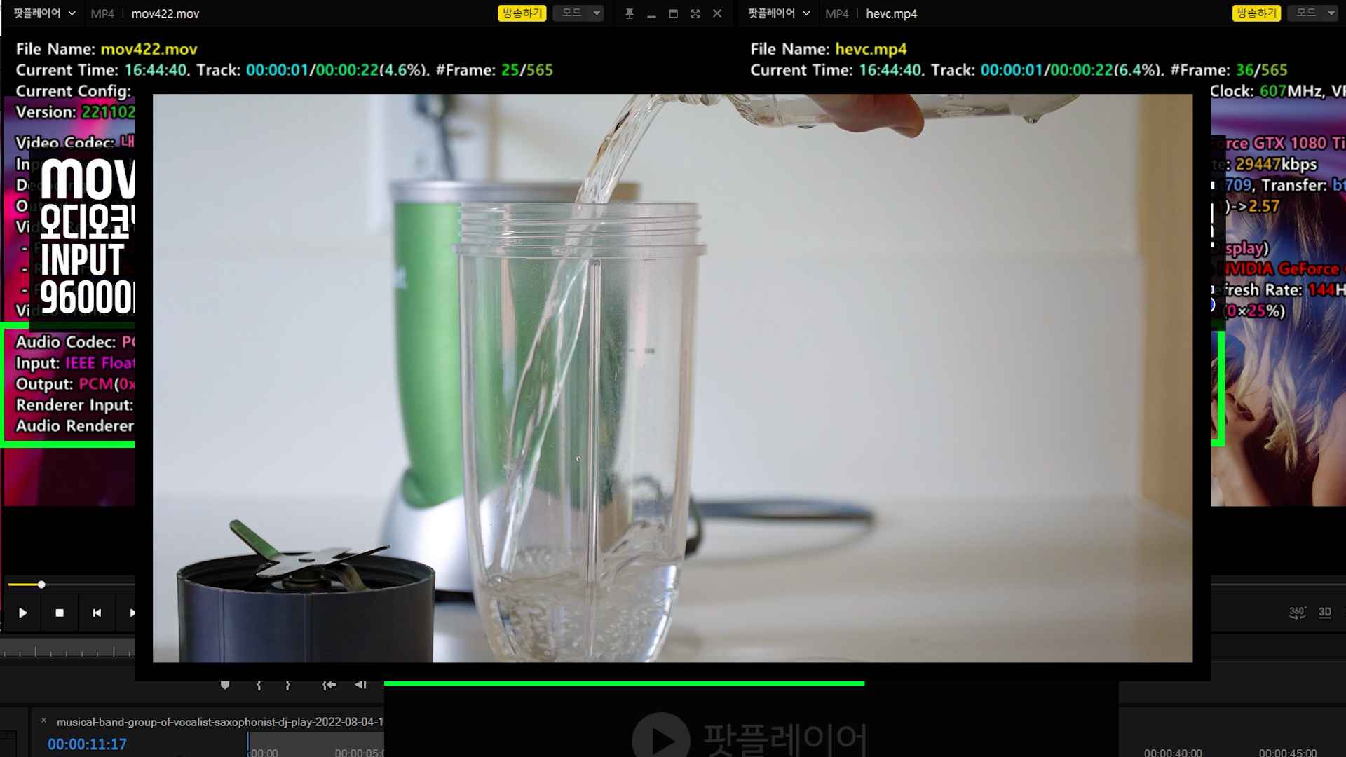 [윗 화면 : mov(prores422LT) / mp4(hevc h.265)]