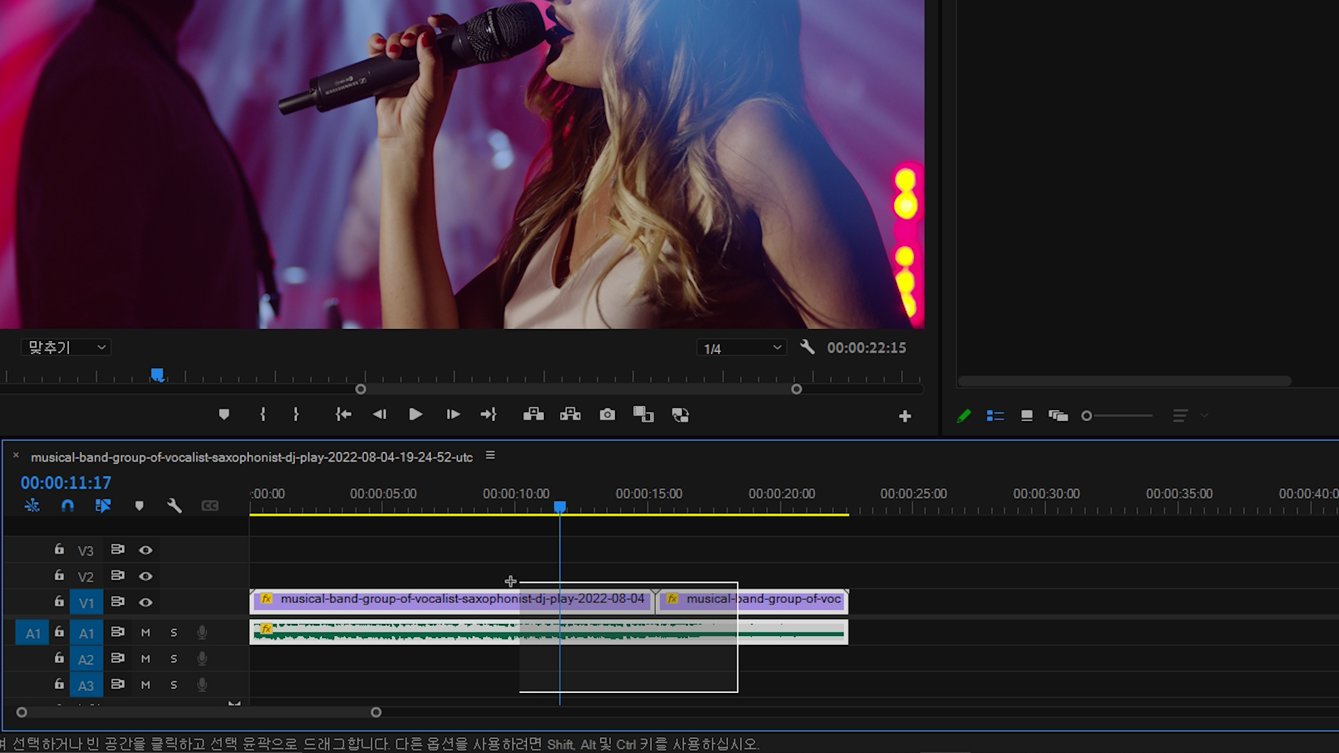 혹은 쉬프트를 누르고 마우스로 클릭해서 원하는 클립을 선택해도 됩니다.