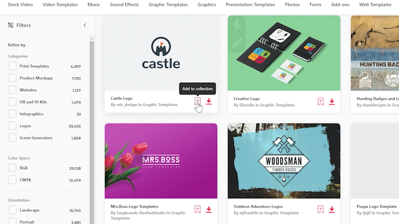 그리고 마음에 드는 항목에서 '+(플러스 버튼 / add to collection)'을 누릅니다.
