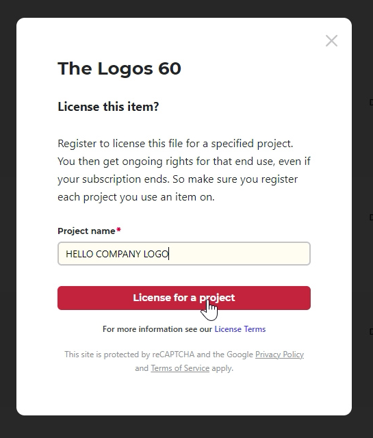 애드 라이선스를 누르고 'hello company logo'라고 적었고 추가하면, 이 프로젝트에 대한 라이센스가 또 생겨난 것입니다.