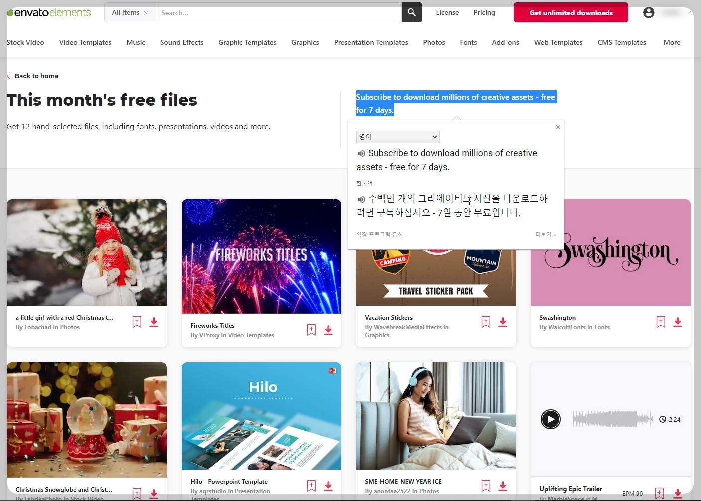 엔바토 엘리먼트 무료(free files).