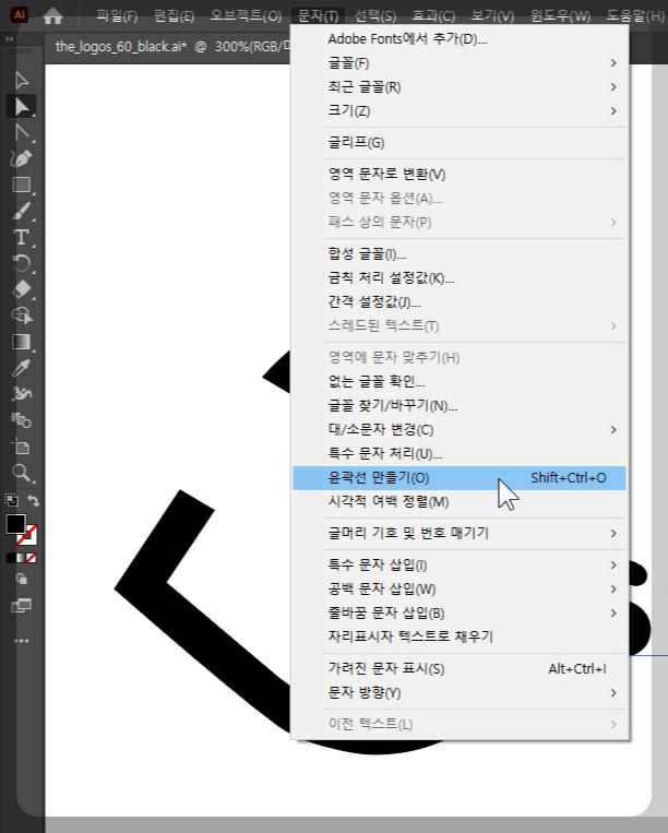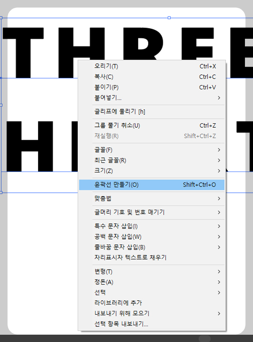 혹은 글자 우클릭 - 윤곽선 만들기(Create outline, 단축키 shift + ctrl + o).