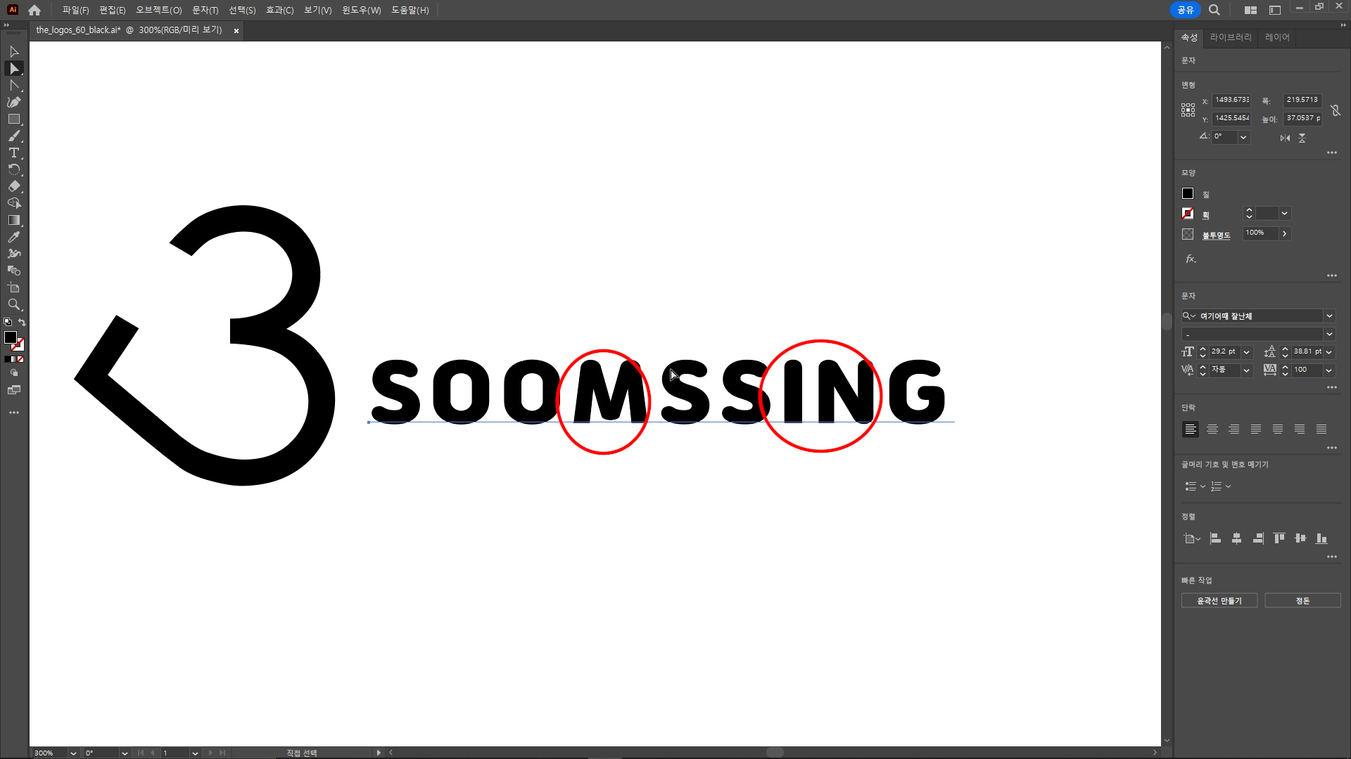 일러스트 글자(문자) 수정 (Correction of illustration characters).