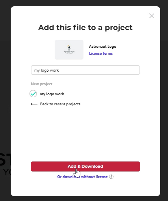 프로젝트를 한 번만 등록해 놓으면, 다른 아이템을 다운로드할 때는 그 프로젝트를 선택하고 빠르게 다운로드하면 됩니다.