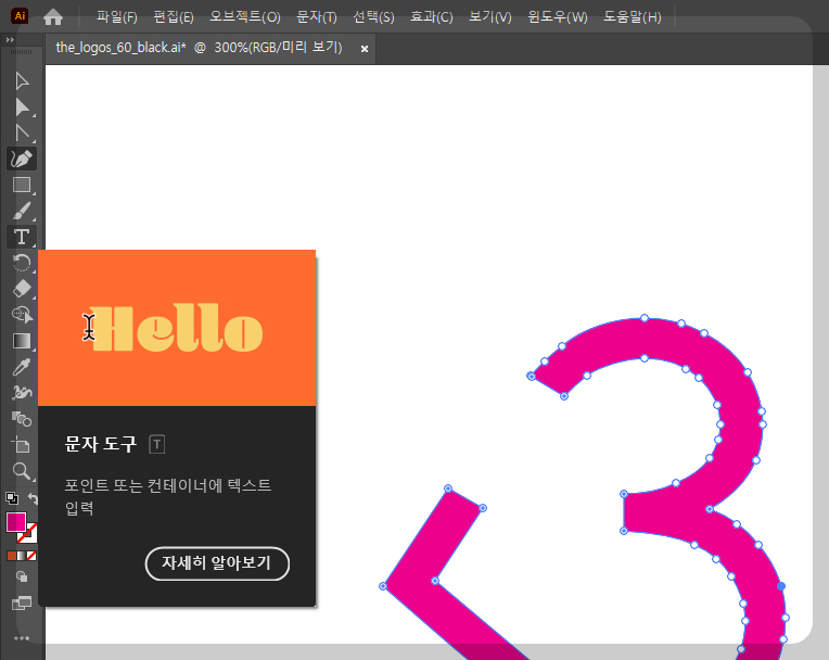 일러스트 문자도구 (단축키 t)는 ' T ' 모양의 버튼입니다.