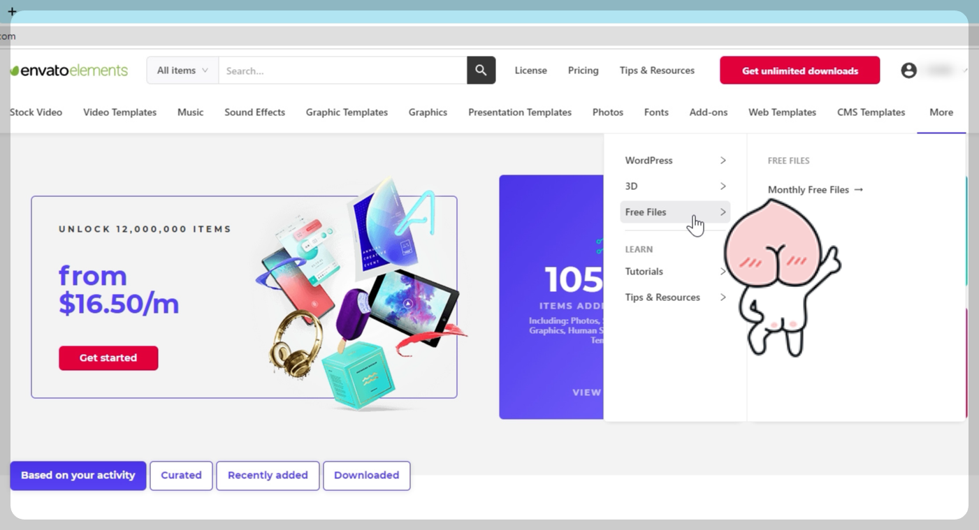 엔바토엘리먼트 무료 페이지: https://1.envato.market/75zK6y