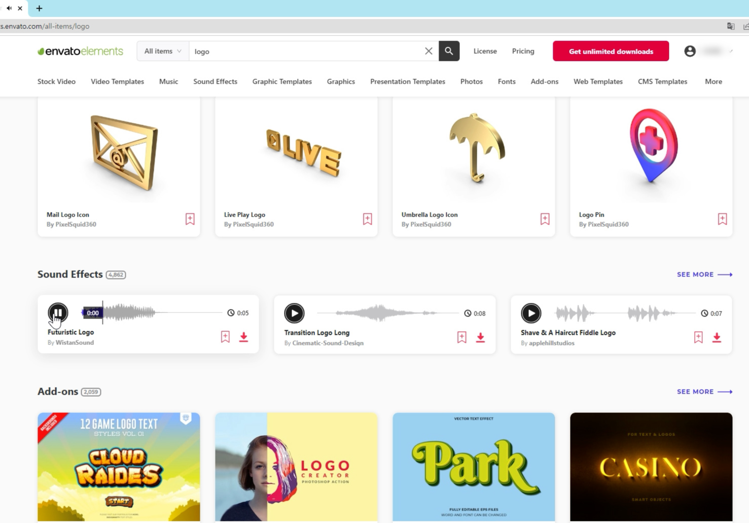 로고와 관련한 효과음(sound effect)도 검색이 되네요. 다양해서 좋네요.