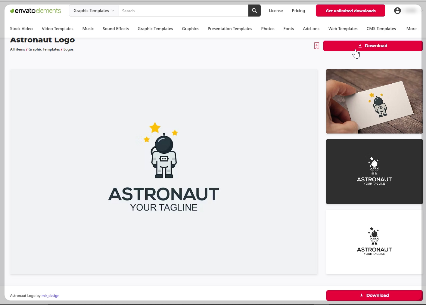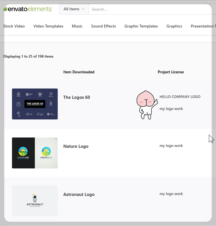 엔바토엘리먼트(envato elements / 엔바토 엘리먼츠) 사이트에서 로고 logo을 검색했어요.