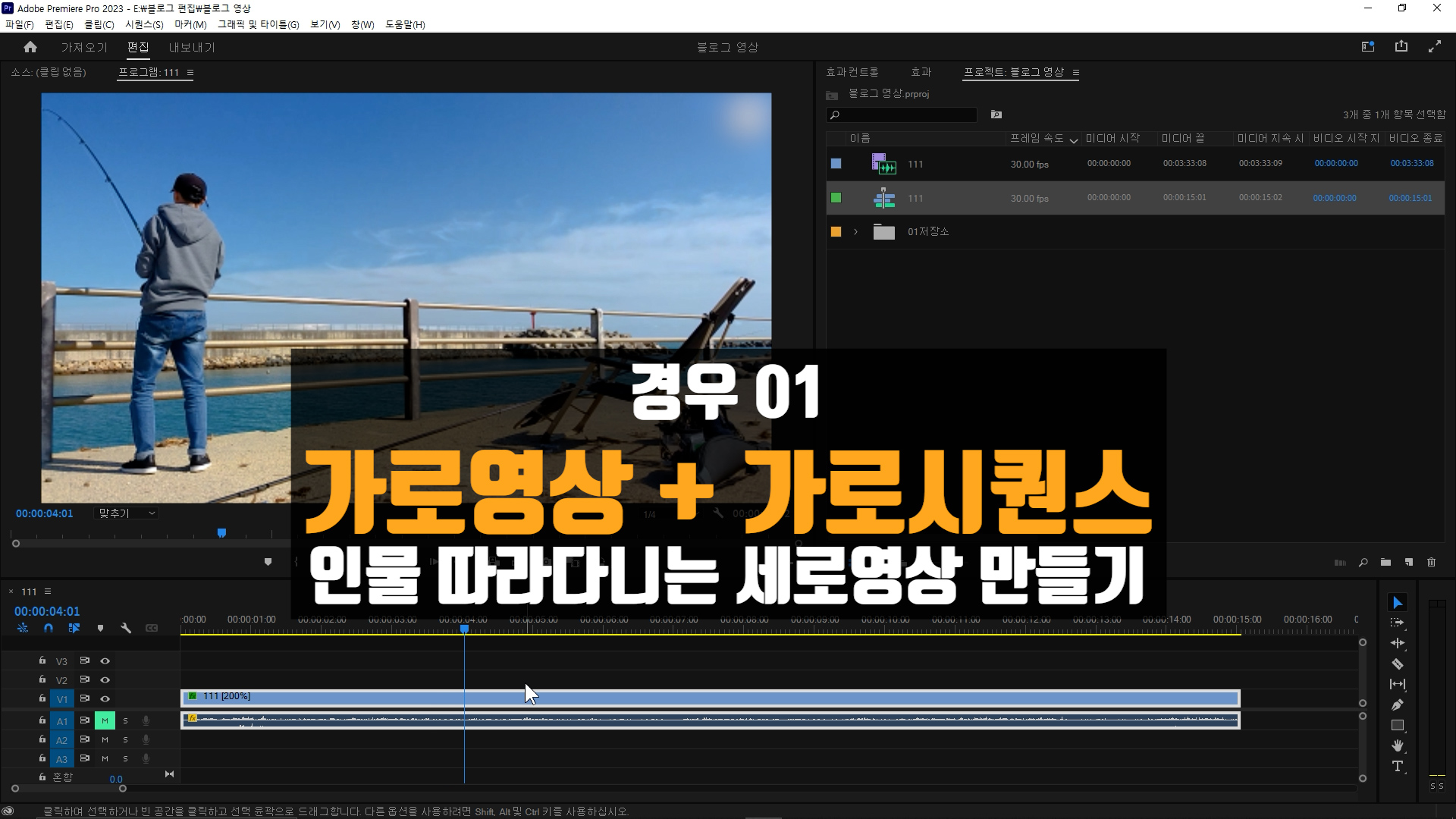 경우04 : 가로 영상 + 세로 시퀀스 → 세로 영상 (숏폼).