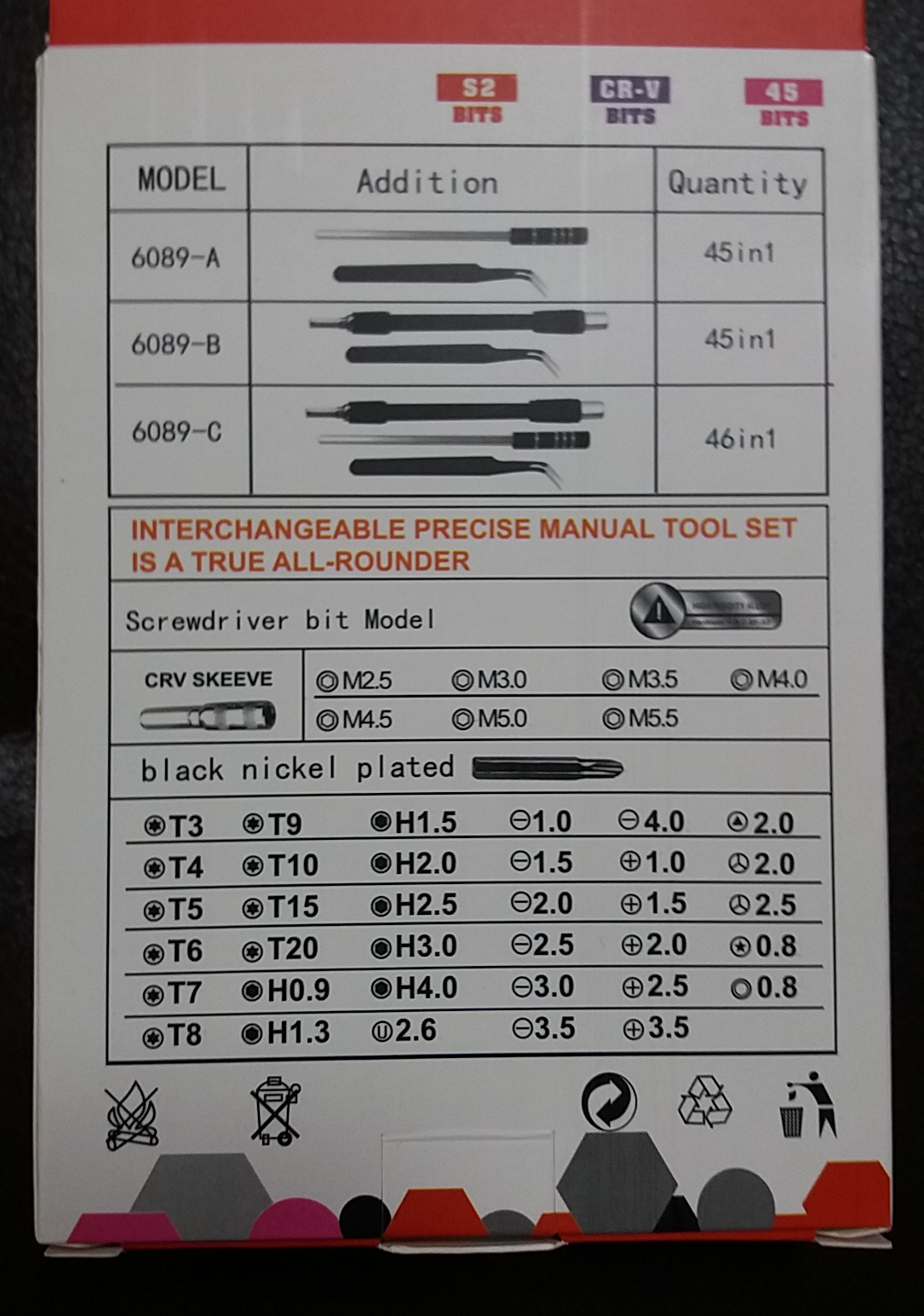 45종류의 다양한 정밀 드라이버라서 웬만한 제품에는 모두 사용 될 거라 생각해요.