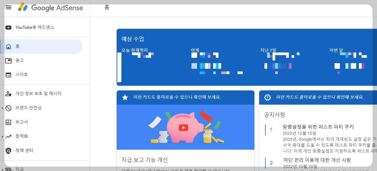 근데 구글 애드센스는 진입장벽이 있어요. 마치 유튜브 수익창출 기준인 '구독자수 1000명, 4000시간 시청' 처럼.