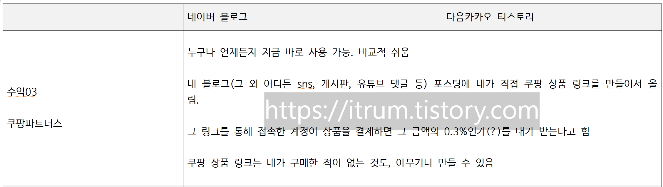 네이버 블로그 티스토리 비교, 수익 방법 03 쿠팡 파트너스.