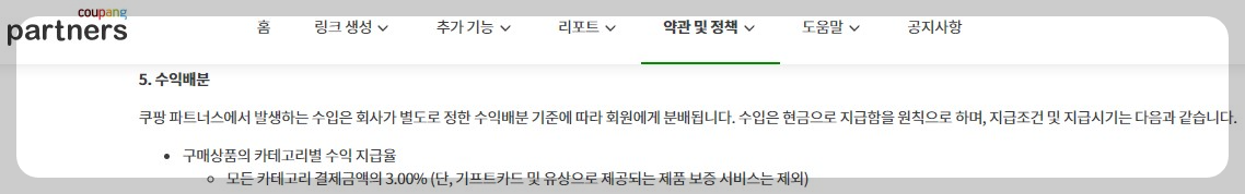 쿠팡 파트너스의 수익은 누군가가 링크를 타고 쿠팡에 들어가서 결제한 금액의 3%를 나눠준다고 합니다.