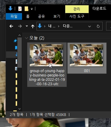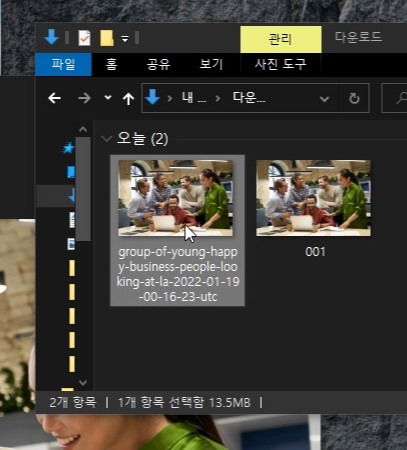 다운 받은 사진을 사진 앱으로 실행합니다. 일반적으로 이미지를 더블클릭하면 사진앱으로 실행되지만, 만약 다른 앱(프로그램)으로 실행된다면 우클릭으로 실행합니다.