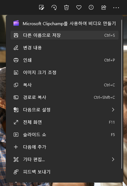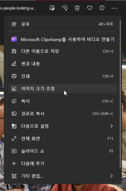 윈도우11 사진앱에서 이미지 크기 조절을 하면, 크기 변경과 용량 줄이기가 가능합니다.