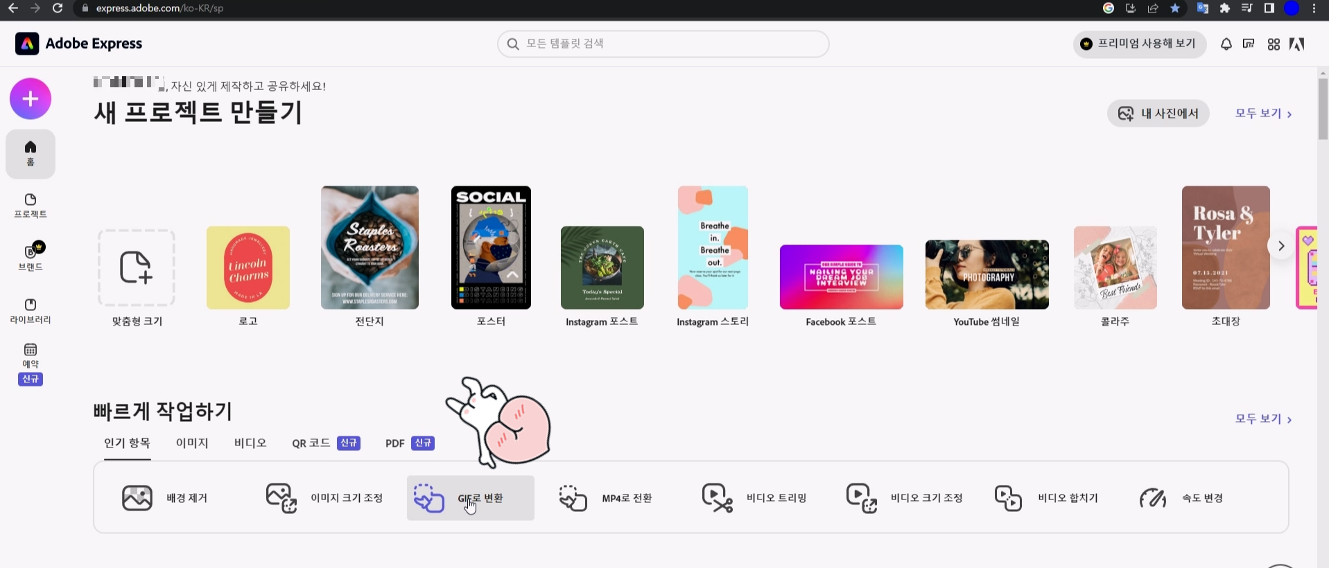스마트폰에서는 adobe express 어도비 익스프레스 앱을 설치해야 합니다.