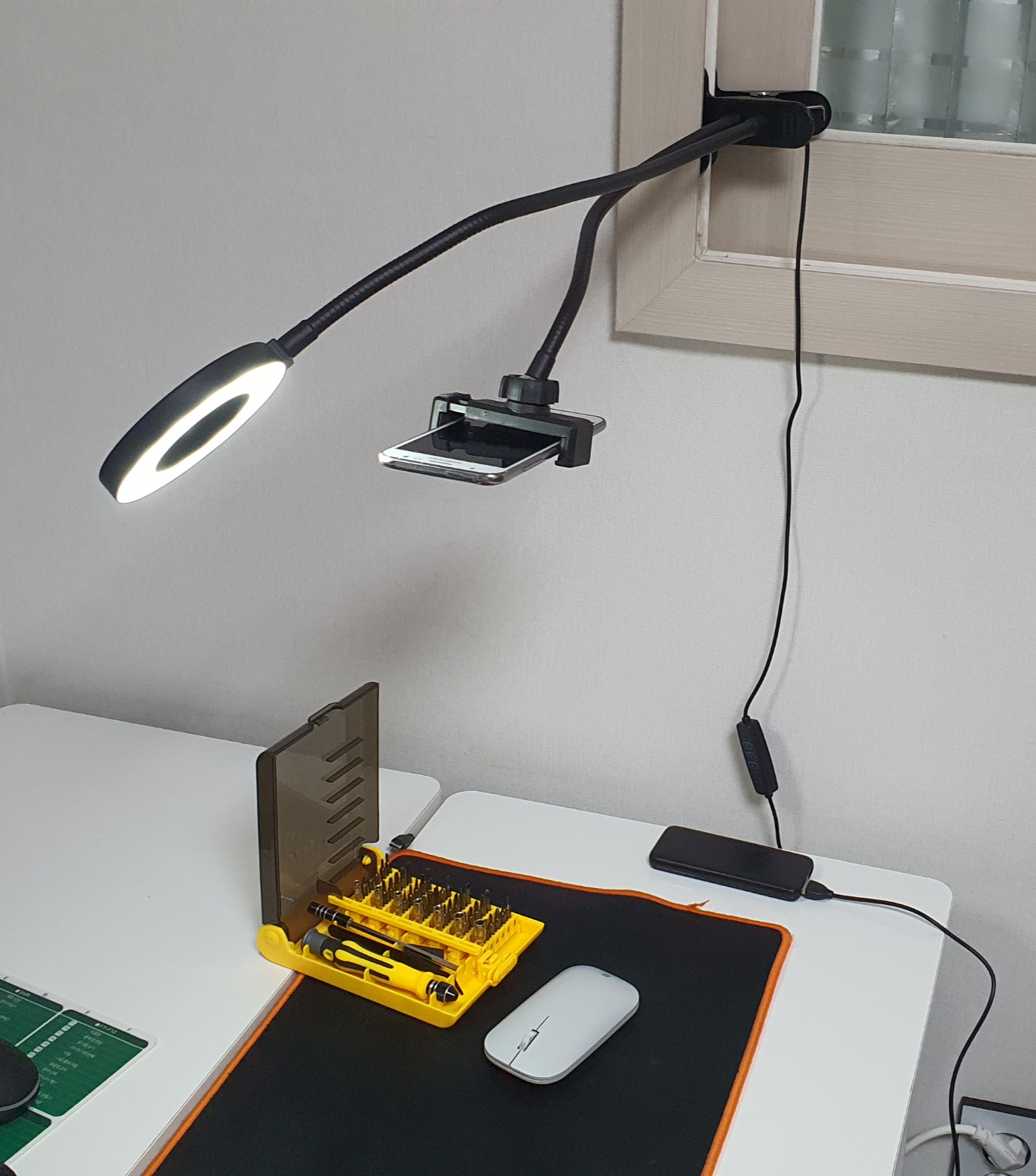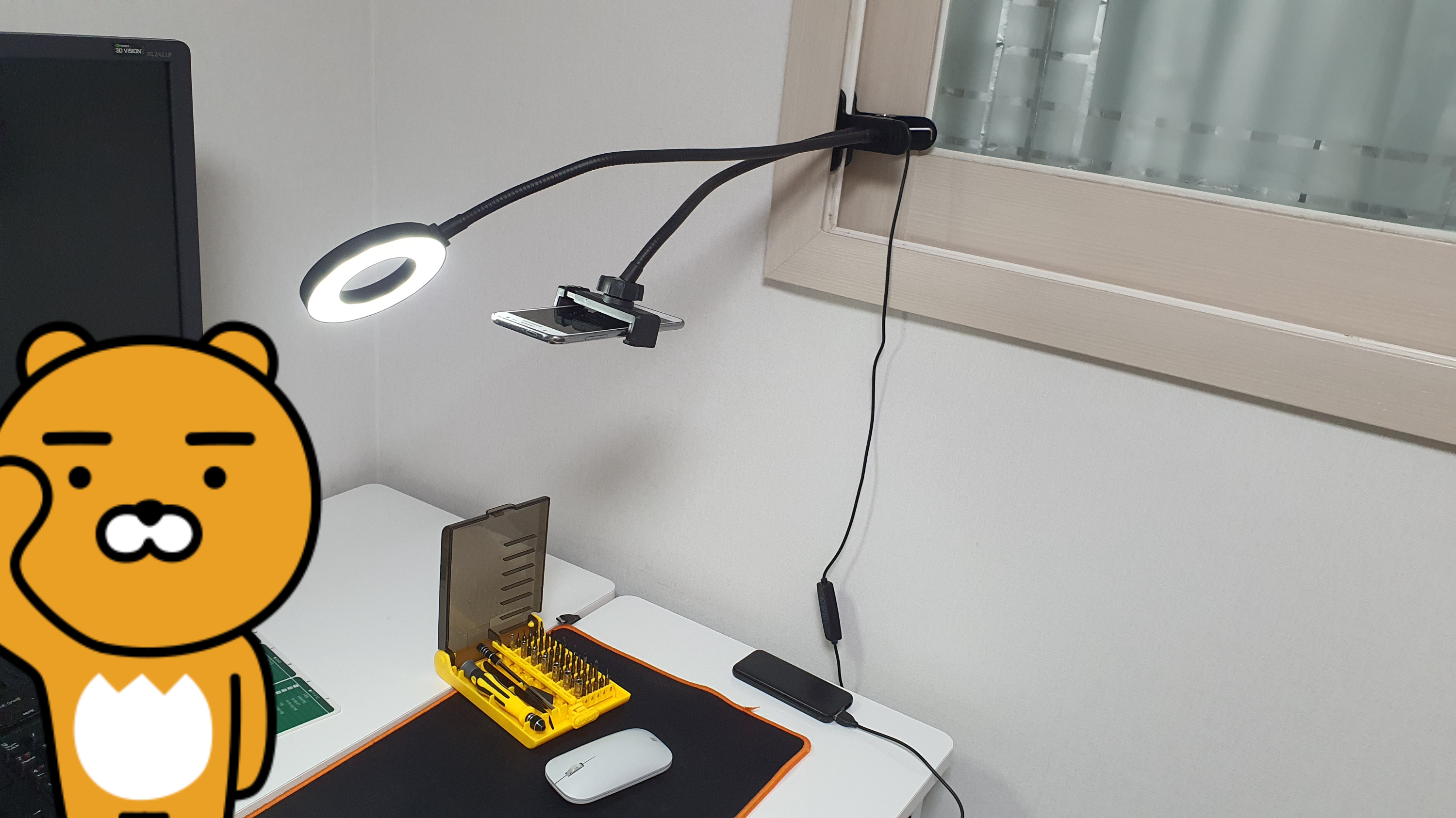 이게 촬영용으로 사용할 수도 있는데, 설치해놓고 보니 일반 데스크 스탠드(침대 스탠드)로 편하게 사용할 수 있을 거 같아요.