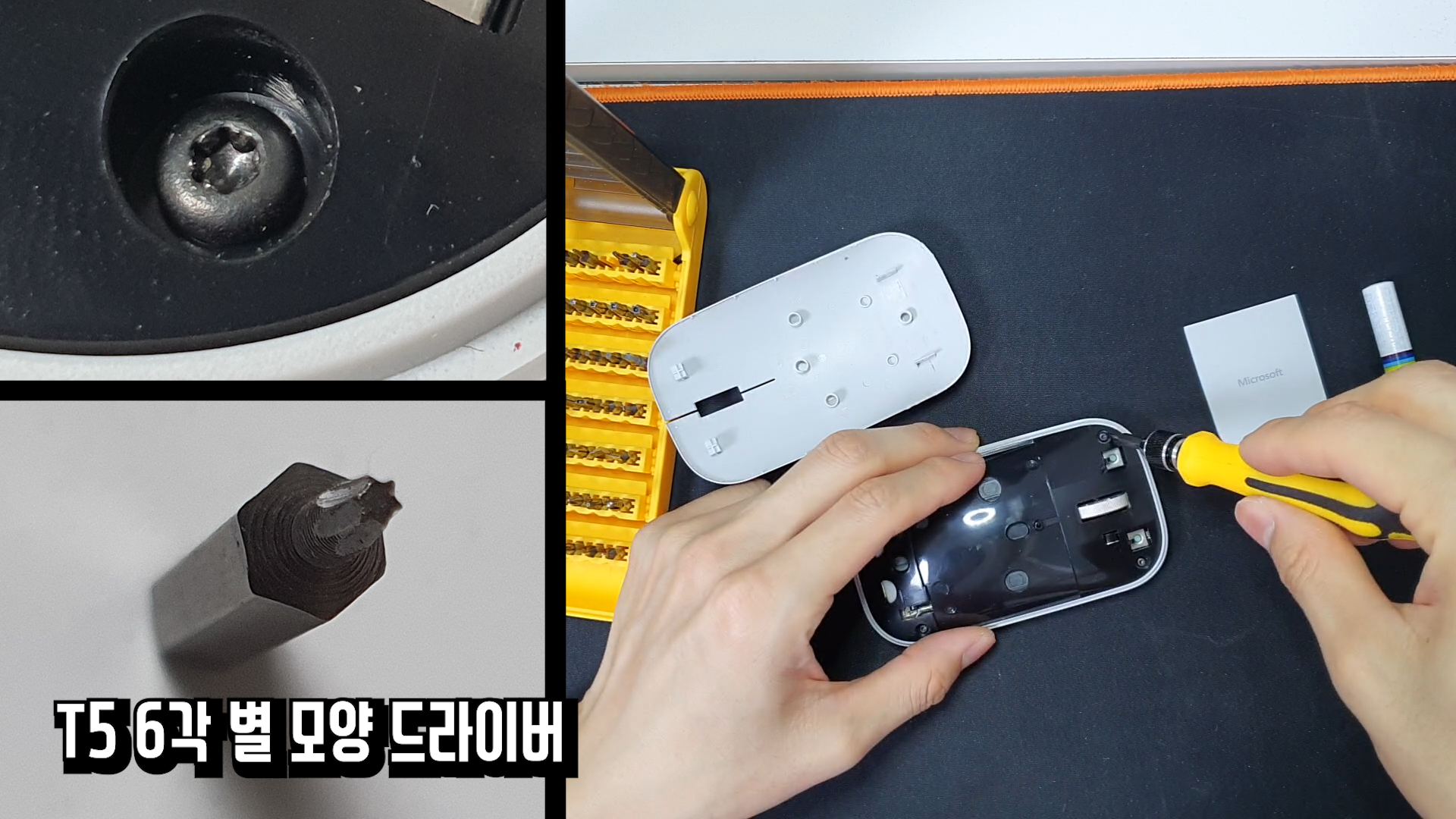 마우스 내부를 분해하기 위해서는 6각 별 모양 드라이버가 필요합니다.