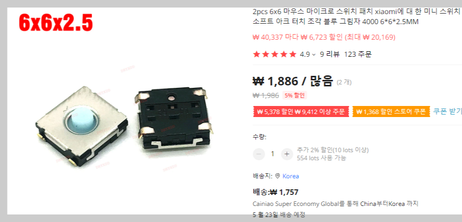 마이크로소프트 마우스 내부 버튼(스위치)은 알리익스프레스에 가면 찾을 수 있어요.