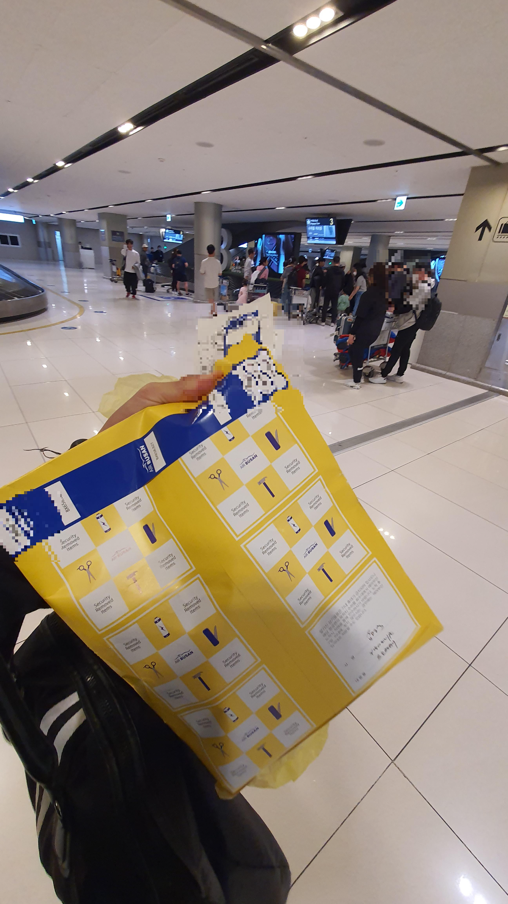 저는 확인증 같은 것을 받고, 노란 봉투(배터리)는 승무원이 가져갑니다.