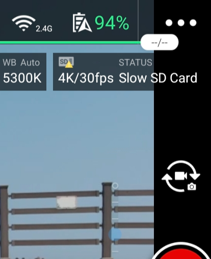 반면, u1 sd카드는 '4k해상도의 30프레임' 녹화시, 노란색 경고 표시를 볼 수 있어요. 게다가 상태란에는 'Slow SD Card '라고 적혀있어요.