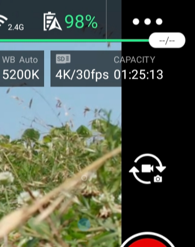 (평소 사용하던 sd카드) 4k 녹화가 정상적으로 가능한 U3 sd카드는 경고등도 없고 녹화 가능 시간이 표시 됩니다. 64gb sd카드로 4k 녹화를 1시간 25분 할 수있다고 나옵니다.