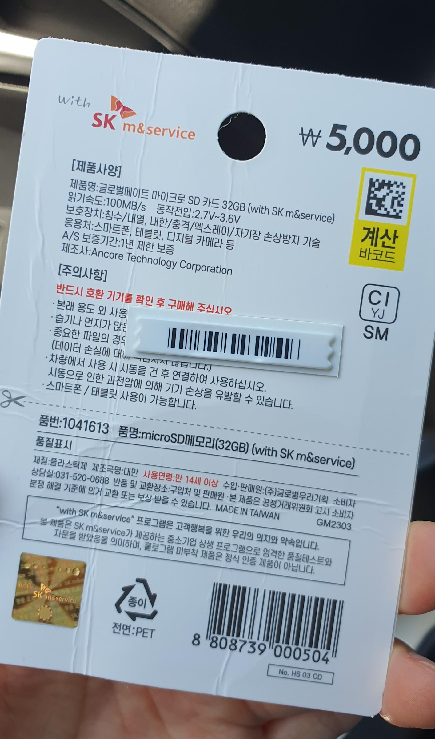 제품명 : 글로벌메이트 마이크로SD카드 32기가.
