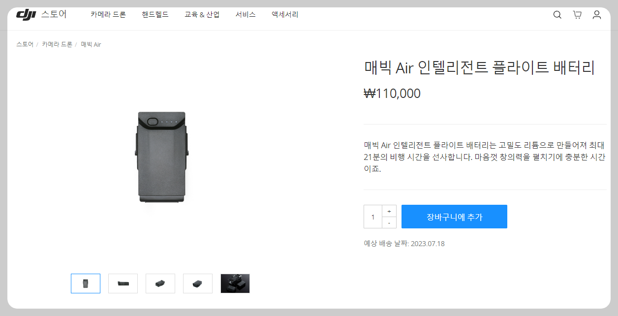 DJI 공식 사이트에서 배터리 판매가 중단되기 전에 2개는 더 사서 여분으로 구매해 놓고 싶네요.