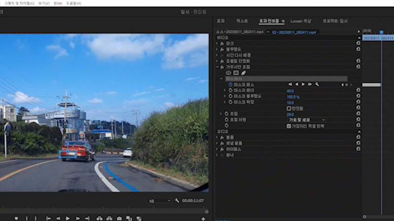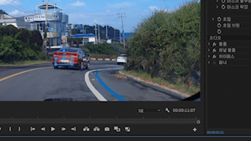 어도비 프리미어의 가우시안 흐림 효과를 이용해서 번호판을 뿌옇게 바꿔볼게요.