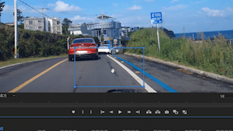 번호판이 가장 잘 나온 당면에서 마스크를 씌우고 '앞으로 추적 / 뒤로 추적' 각각 작업해 주면 좋습니다.