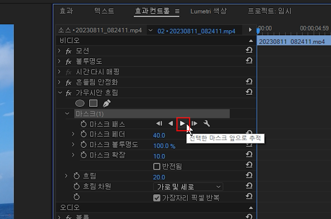 다시 '마스크 추적' 화살표 버튼을 누릅니다.