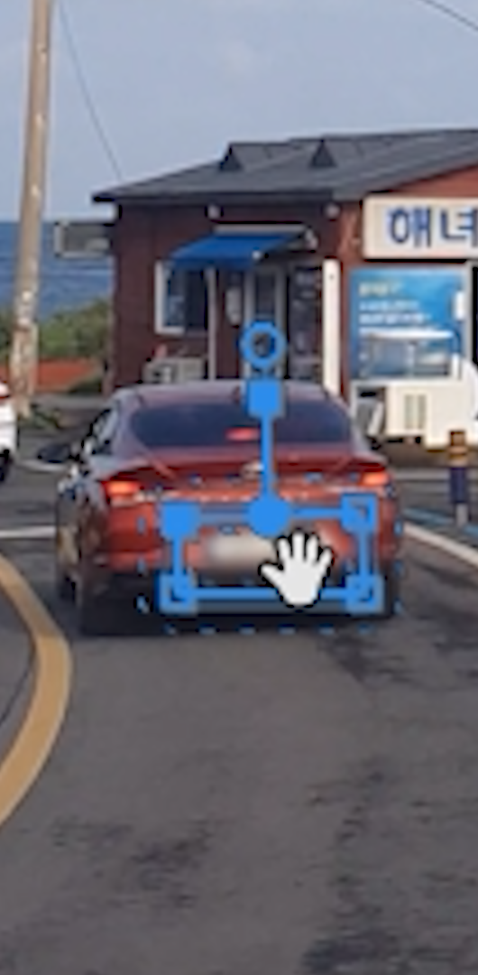 화면에 생성된 마스크의 꼭지점을 잡고 이동해서, 번호판 부분에 적용시킵니다.